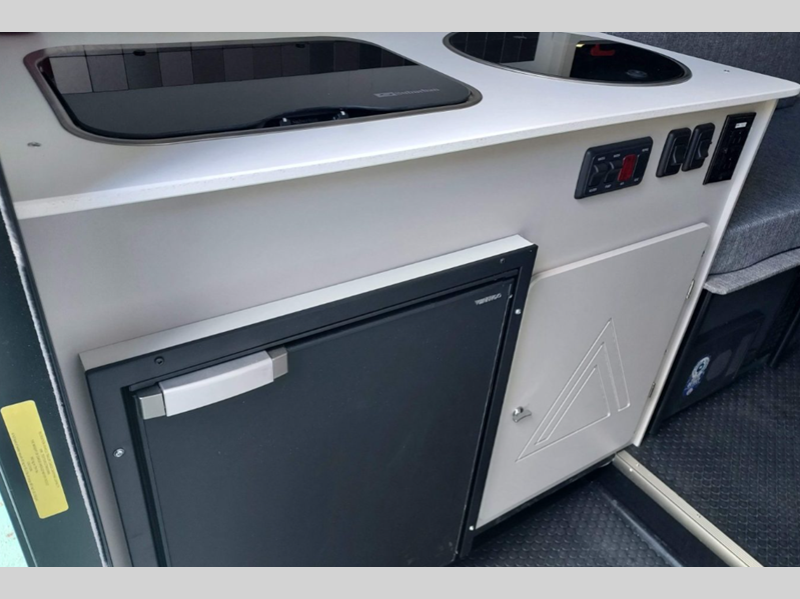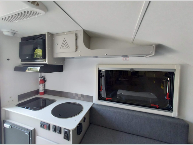 You will love the real hardwood cabinetry inside, along with a convenient wet bath, LED lights, and kitchen amenities that will allow you to cook inside when the weather isn't cooperating at camp. An outside shower will let you wash of hiking gear and a 50W front mounted solar panel will provide some off-grid power!