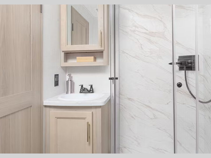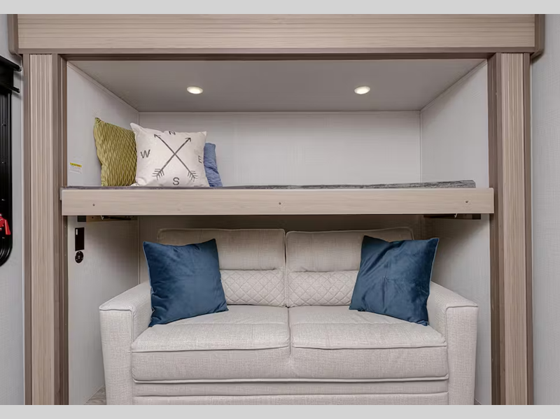 - Queen size bed w/ built-in pet kennel storage (select models)