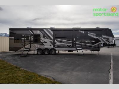 Experience a breath of fresh air with one of these Keystone RV Raptor fifth wheel toy haulers! Their rugged construction consists of a one-piece Alpha Super Flex TPO roof membrane, Dyna Span floor decking, and 5,000 lb. frame-welded tie- downs to keep your toys in place as you travel. Some unexpected conveniences you will appreciate include an Omni-Chill A/C system to keep you cool on those hot summer days, a Furrion backup camera, MaxTurn™ technology with a Helux™ pin box, and a Generation 3 iN-Command smart automation system with Global Connect to make life easier. There is also designer style vinyl flooring throughout, along with new ceiling treatment with LED accent lighting, beach wood and white cabinetry, and many more interior comforts!