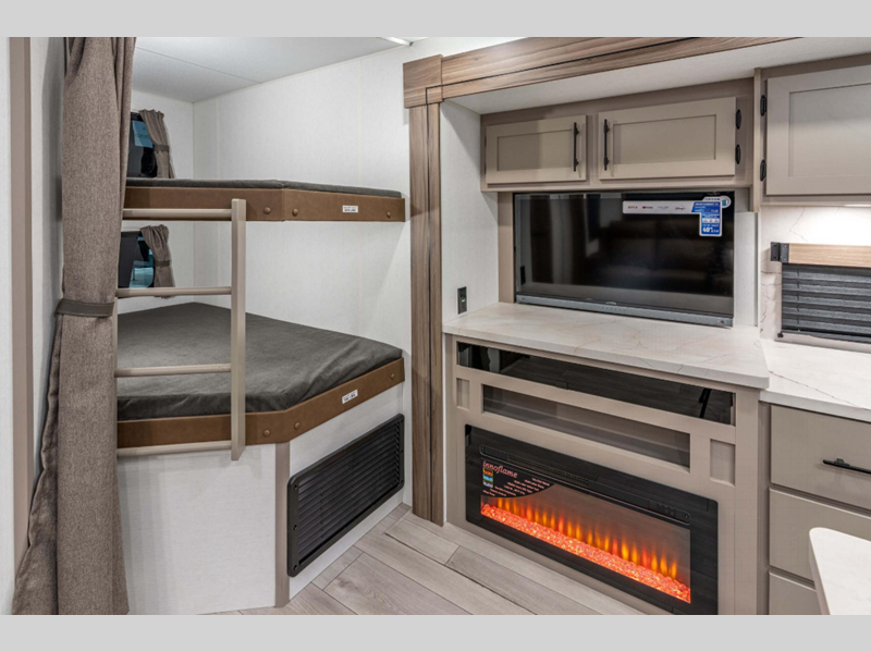 Sleeps 6 Slides 2 Length 30 ft Ext Width 8 ft Ext Height 11 ft 4 in Int Height 6 ft 10 in Interior Color Nomad Hitch Weight 820 lbs GVWR 8800 lbs Dry Weight 6960 lbs Cargo Capacity 1840 lbs Fresh Water Capacity 45 gals Grey Water Capacity 64 gals Black Water Capacity 32 gals Tire Size 15" Furnace BTU 30000 btu Number Of Bunks 2 Available Beds King Refrigerator Type 12V Refrigerator Size 10 cu ft Cooktop Burners 3 Number of Awnings 1 Axle Weight 6140 lbs LP Tank Capacity 20 lbs Water Heater Type On Demand Tankless AC BTU 13500 btu TV Info LR LED TV Awning Info 19' Electric with LED Lights Axle Count 2 Number of LP Tanks 2 Shower Type Radius Electrical Service 30 amp Similar Floorplans