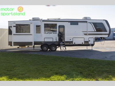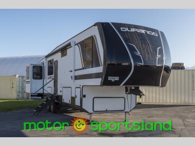 Enjoy full time living, an affordable price, and a wide body construction for more living space with every one of these KZ Durango light high-profile fifth wheels! These luxury units can be used all year round with the all-weather insulation package, the 3" x 14" foam-core in-floor straight-line heating system with a 35,000 BTU furnace, and the 15,000 BTU ducted roof A/C which optimizes the airflow by an average of 40% for better performance, cooling time, and reduction of noise. A few other construction features you will appreciate include a one piece, seamless walk-on Tufflex roofing material, Pex® in-floor heated waterlines, and a Lamilux® gelcoat fiberglass exterior. Inside, blancher maple & morel fog cabinetry , a king size bed, and smart TVs will have you feeling like you never left home!